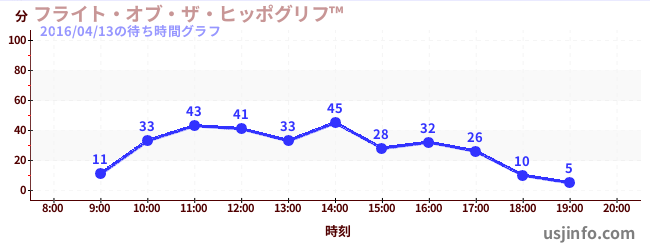 • フライト・オブ・ザ・ヒッポグリフ™$B$N(B2016年04月13日の待ち時間