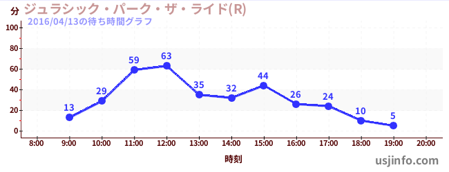 • ジュラシック・パーク・ザ・ライド(R)$B$N(B2016年04月13日の待ち時間