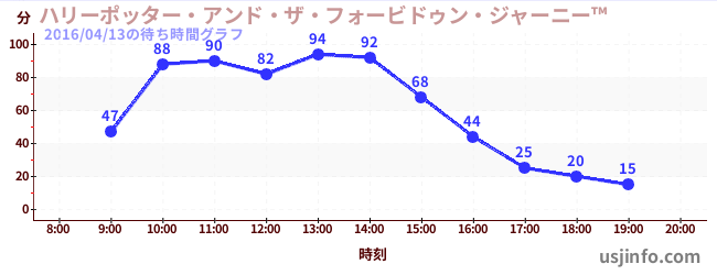 • ハリーポッター・アンド・ザ・フォービドゥン・ジャーニー™$B$N(B2016年04月13日の待ち時間