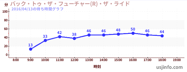 • バック・トゥ・ザ・フューチャー(R)・ザ・ライド$B$N(B2016年04月13日の待ち時間