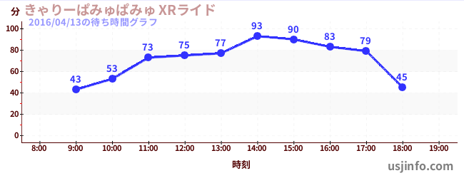 • きゃりーぱみゅぱみゅ XRライド$B$N(B2016年04月13日の待ち時間