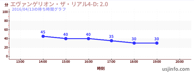 • エヴァンゲリオン・ザ・リアル4-D: 2.0$B$N(B2016年04月13日の待ち時間