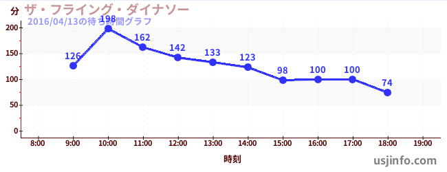 • ザ・フライング・ダイナソー$B$N(B2016年04月13日の待ち時間