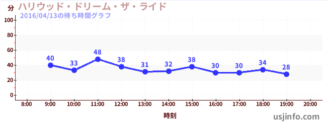 • ハリウッド・ドリーム・ザ・ライド$B$N(B2016年04月13日の待ち時間