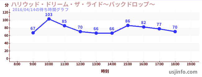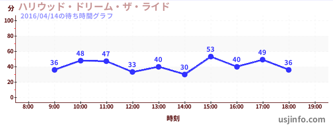• ハリウッド・ドリーム・ザ・ライド$B$N(B2016年04月14日の待ち時間