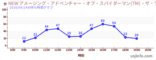 • NEW アメージング・アドベンチャー・オブ・スパイダーマン(TM)・ザ・ライド 4K3D$B$N(B2016年04月14日の待ち時間