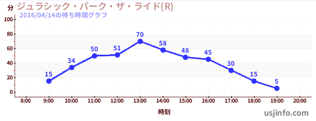 • ジュラシック・パーク・ザ・ライド(R)$B$N(B2016年04月14日の待ち時間