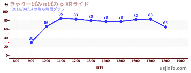• きゃりーぱみゅぱみゅ XRライド$B$N(B2016年04月14日の待ち時間