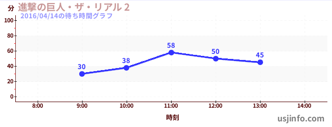• 進撃の巨人・ザ・リアル 2$B$N(B2016年04月14日の待ち時間