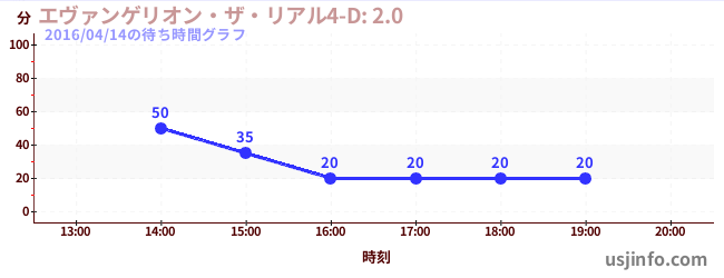 • エヴァンゲリオン・ザ・リアル4-D: 2.0$B$N(B2016年04月14日の待ち時間