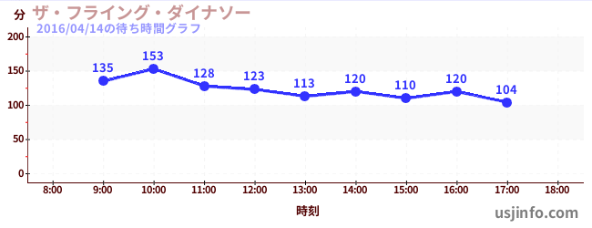 • ザ・フライング・ダイナソー$B$N(B2016年04月14日の待ち時間