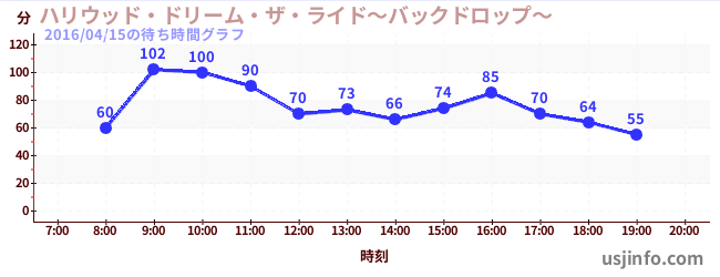 • ハリウッド・ドリーム・ザ・ライド〜バックドロップ〜$B$N(B2016年04月15日の待ち時間