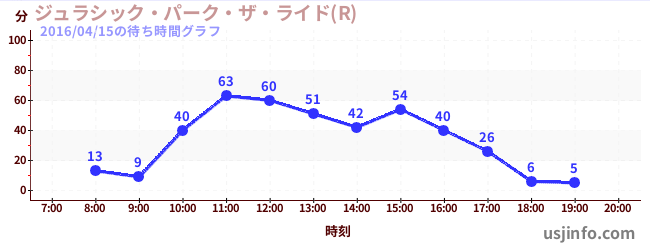 • ジュラシック・パーク・ザ・ライド(R)$B$N(B2016年04月15日の待ち時間