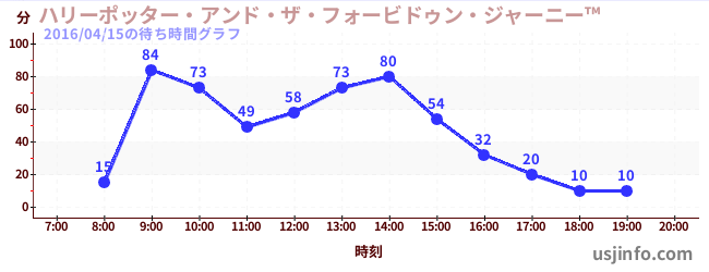 • ハリーポッター・アンド・ザ・フォービドゥン・ジャーニー™$B$N(B2016年04月15日の待ち時間