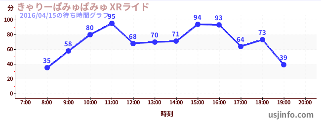 • きゃりーぱみゅぱみゅ XRライド$B$N(B2016年04月15日の待ち時間