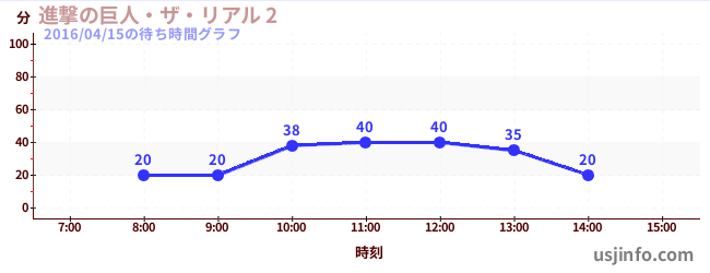 • 進撃の巨人・ザ・リアル 2$B$N(B2016年04月15日の待ち時間