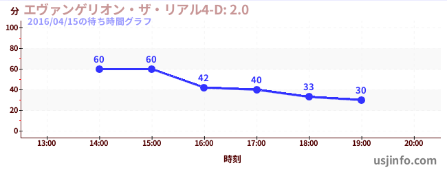 • エヴァンゲリオン・ザ・リアル4-D: 2.0$B$N(B2016年04月15日の待ち時間