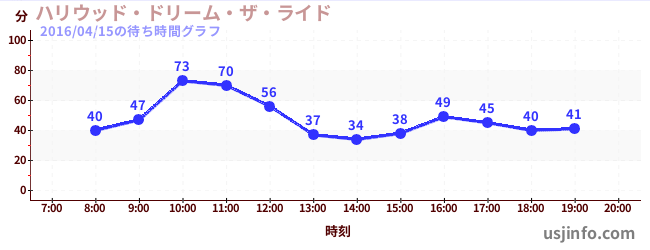 • ハリウッド・ドリーム・ザ・ライド$B$N(B2016年04月15日の待ち時間