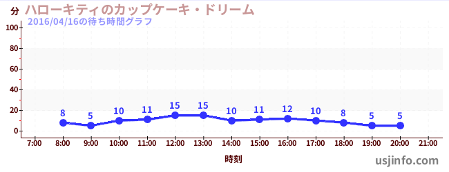 • ハローキティのカップケーキ・ドリーム$B$N(B2016年04月16日の待ち時間