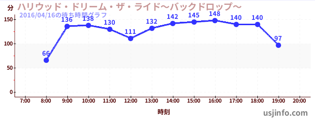 • ハリウッド・ドリーム・ザ・ライド〜バックドロップ〜$B$N(B2016年04月16日の待ち時間