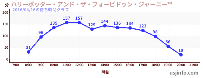 • ハリーポッター・アンド・ザ・フォービドゥン・ジャーニー™$B$N(B2016年04月16日の待ち時間