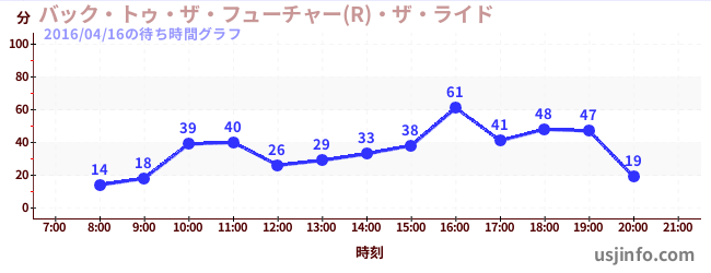 • バック・トゥ・ザ・フューチャー(R)・ザ・ライド$B$N(B2016年04月16日の待ち時間