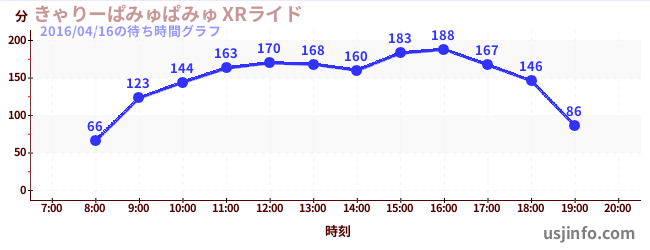 • きゃりーぱみゅぱみゅ XRライド$B$N(B2016年04月16日の待ち時間
