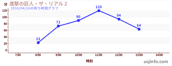 • 進撃の巨人・ザ・リアル 2$B$N(B2016年04月16日の待ち時間