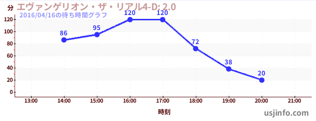 • エヴァンゲリオン・ザ・リアル4-D: 2.0$B$N(B2016年04月16日の待ち時間