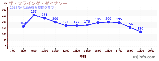 • ザ・フライング・ダイナソー$B$N(B2016年04月16日の待ち時間