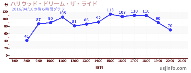• ハリウッド・ドリーム・ザ・ライド$B$N(B2016年04月16日の待ち時間