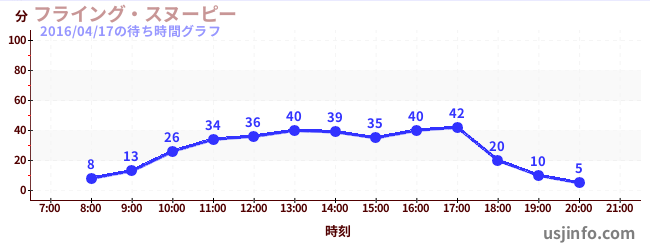 • フライング・スヌーピー$B$N(B2016年04月17日の待ち時間