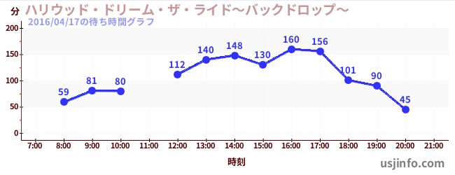 • ハリウッド・ドリーム・ザ・ライド〜バックドロップ〜$B$N(B2016年04月17日の待ち時間