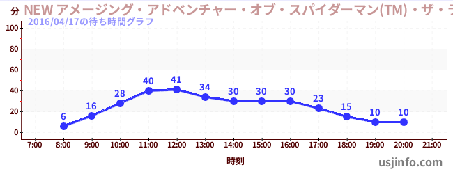 • NEW アメージング・アドベンチャー・オブ・スパイダーマン(TM)・ザ・ライド 4K3D$B$N(B2016年04月17日の待ち時間
