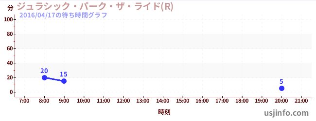 • ジュラシック・パーク・ザ・ライド(R)$B$N(B2016年04月17日の待ち時間