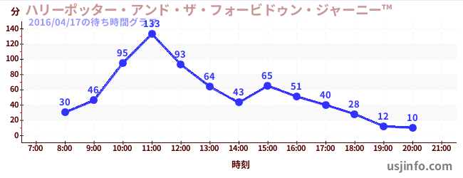 • ハリーポッター・アンド・ザ・フォービドゥン・ジャーニー™$B$N(B2016年04月17日の待ち時間