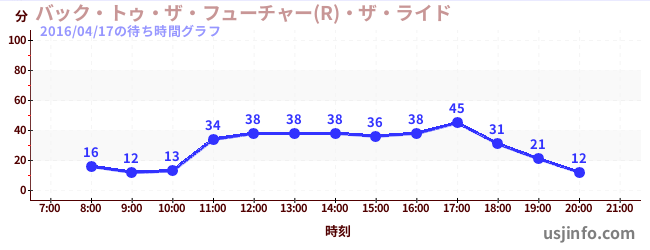 • バック・トゥ・ザ・フューチャー(R)・ザ・ライド$B$N(B2016年04月17日の待ち時間