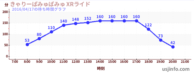 • きゃりーぱみゅぱみゅ XRライド$B$N(B2016年04月17日の待ち時間