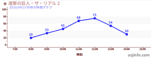 • 進撃の巨人・ザ・リアル 2$B$N(B2016年04月17日の待ち時間
