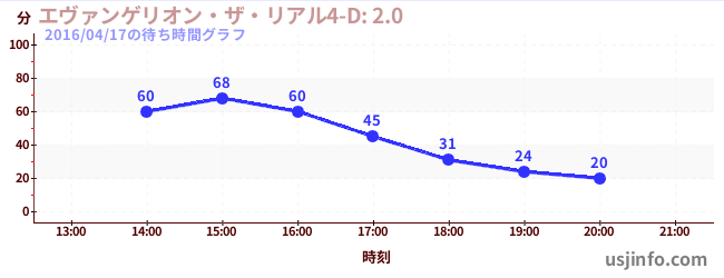 • エヴァンゲリオン・ザ・リアル4-D: 2.0$B$N(B2016年04月17日の待ち時間