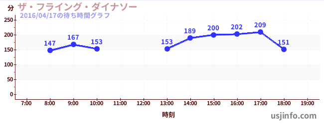 • ザ・フライング・ダイナソー$B$N(B2016年04月17日の待ち時間