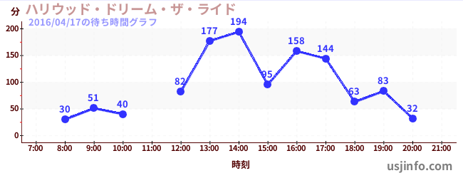 • ハリウッド・ドリーム・ザ・ライド$B$N(B2016年04月17日の待ち時間