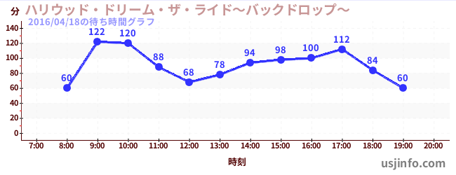 • ハリウッド・ドリーム・ザ・ライド〜バックドロップ〜$B$N(B2016年04月18日の待ち時間