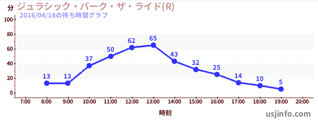 • ジュラシック・パーク・ザ・ライド(R)$B$N(B2016年04月18日の待ち時間