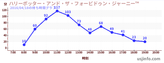 • ハリーポッター・アンド・ザ・フォービドゥン・ジャーニー™$B$N(B2016年04月18日の待ち時間