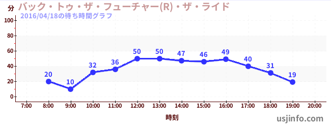 • バック・トゥ・ザ・フューチャー(R)・ザ・ライド$B$N(B2016年04月18日の待ち時間