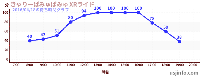 • きゃりーぱみゅぱみゅ XRライド$B$N(B2016年04月18日の待ち時間