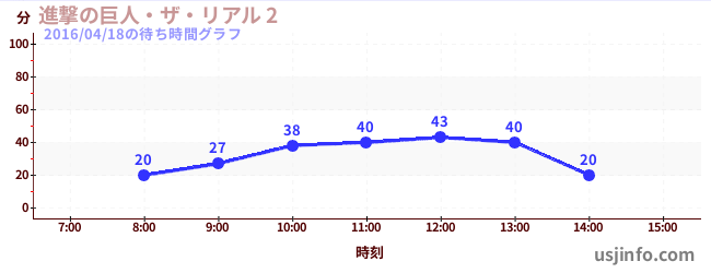 • 進撃の巨人・ザ・リアル 2$B$N(B2016年04月18日の待ち時間