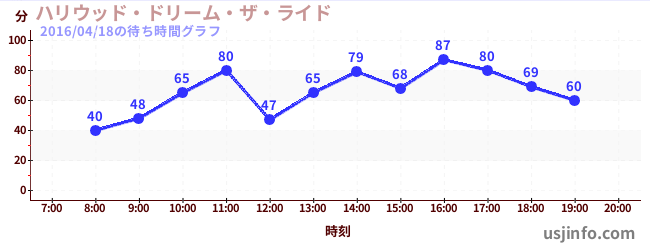 • ハリウッド・ドリーム・ザ・ライド$B$N(B2016年04月18日の待ち時間