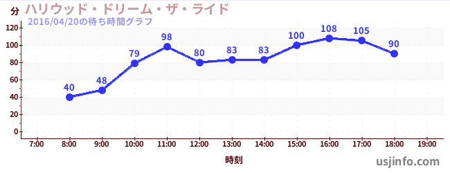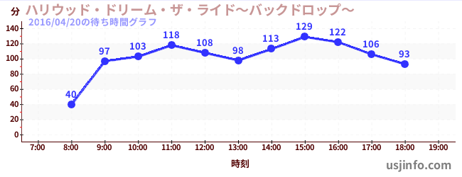 • ハリウッド・ドリーム・ザ・ライド〜バックドロップ〜$B$N(B2016年04月20日の待ち時間